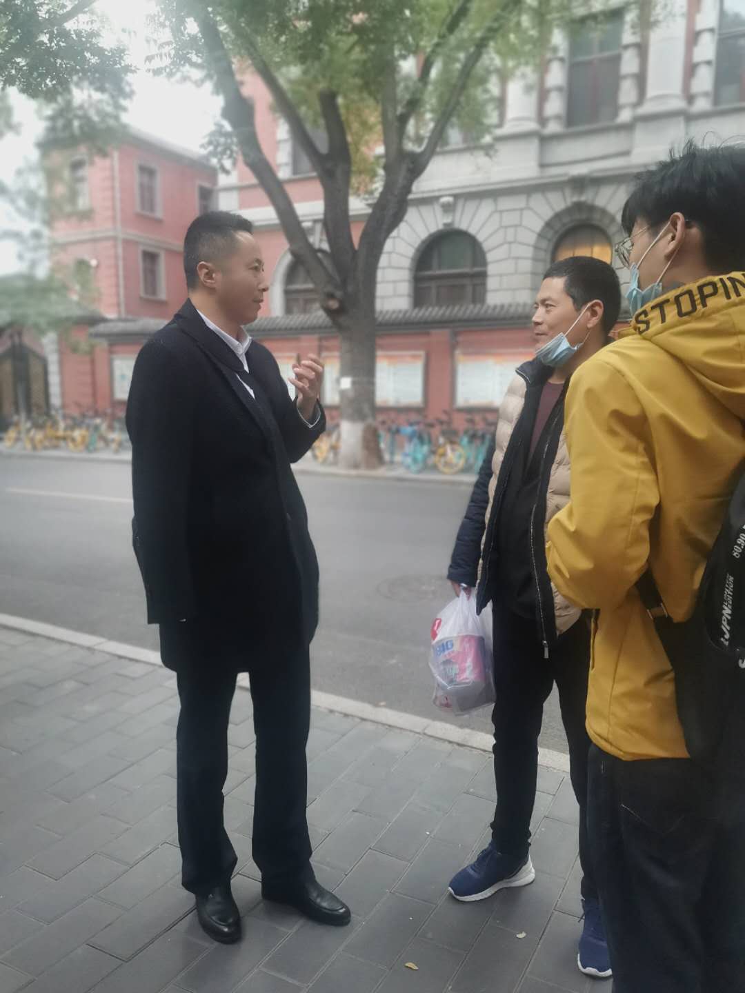 开庭前,代理律师李长青和当事人吴春红交流